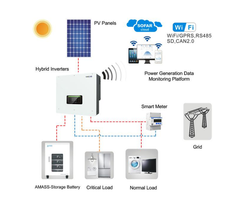 All modes can be easily configured on the large LCD screen. Among others, this inverter is compatible with SOFAR's high-voltage energy storage systems: the GTX 3000-H and BTS battery system. A WiFi-stick is delivered with the inverter, to easily connect the inverter to the SOFAR View monitoring portal.