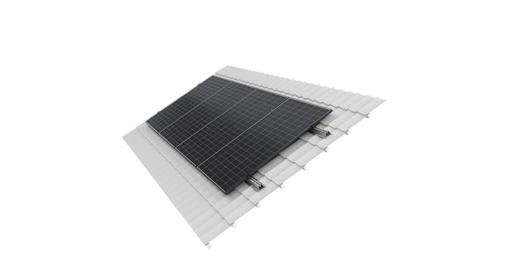 Corab B-057 system is a new construction dedicated for steel roof tiles. The distinguishing feature of this solution is that the assembly is not made to the rafters, but to the sheet. It facilitates and speeds up the assembly, especially on the roof, where it is difficult to find rafters. A new type of SMB-065 rail was used here. Modules can be installed vertically and horizontally.